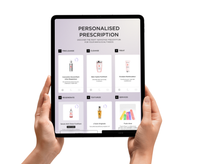 K-SCAN defines the most ultra-personalized routine based on your scalp & hair analysis. It will recommend the best in-salon service, such as Fusio-Dose, and the best at-home routine to extend the benefits on a longer term.