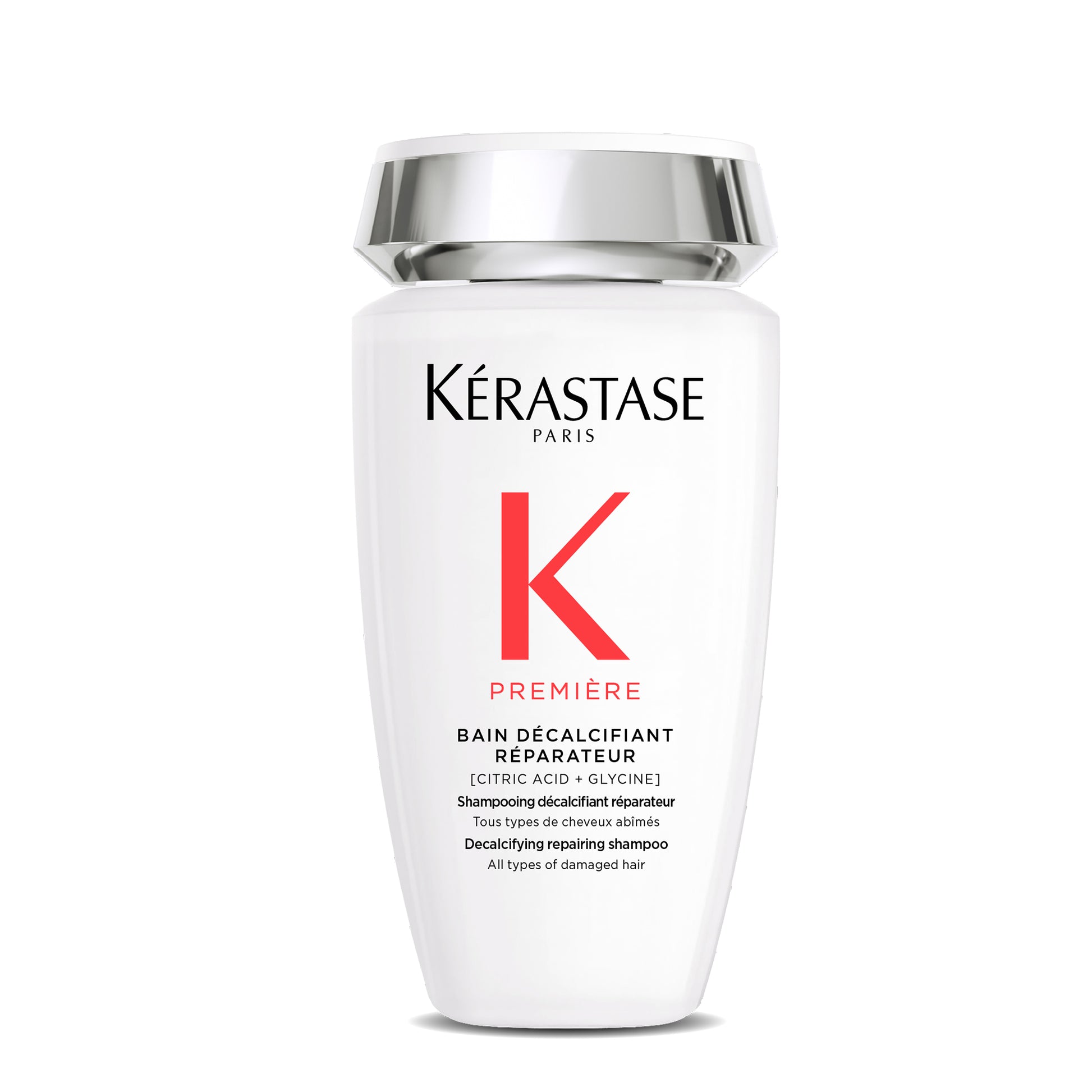 Decalcifying Repairing Shampoo by Kérastase is a decalcifying repairing shampoo for all damaged hair. A rich double-action shampoo, which when used with the routine, works inside and out to remove excess calcium and strengthen and repair damaged hair. This shampoo has a white cream texture with voluptuous foam.